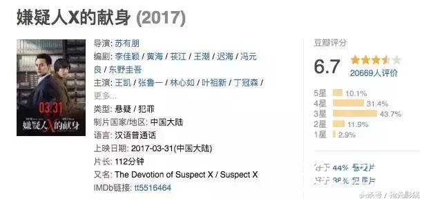 所以,3月31日中国版《嫌疑人X的献身》上映,院长第一时间就去电影院看了。