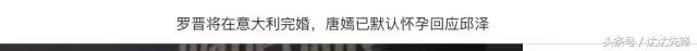 从当时到现在这种唐嫣怀孕的言论就从没停止过!今天更是跑出来罗晋已经默认唐嫣怀了小罗晋,俩人计划意大利完婚的消息!