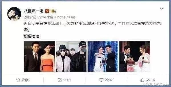 后来在2月底,还有八卦博主也是爆料说唐嫣已经怀孕。罗晋大方承认什么的。