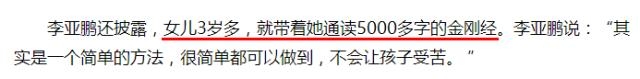 李亚鹏还说教了女儿读《金刚经》。
