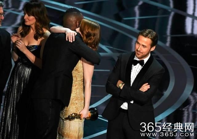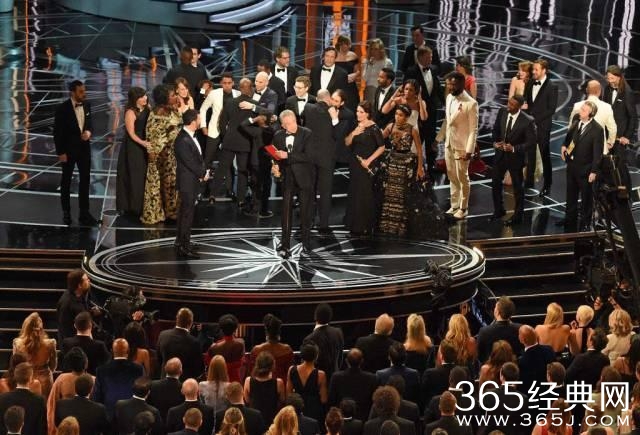 在颁发“最佳影片奖”时,嘉宾念成了《爱乐之城》。众多主创呼啦啦走上台,挨个开开心心致感谢词。