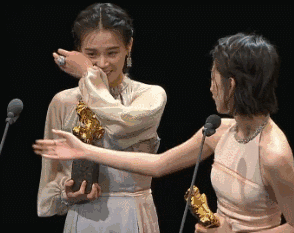 比如去年金马奖下了“双黄蛋”,周冬雨和马思纯同时摘得影后桂冠。两个小妮子从听到获奖就开始懵逼,手牵手上台后也是一起傻笑一起哭。