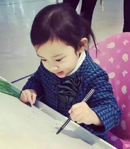 天后王菲和李亚鹏的女儿李嫣俨然是小画家了。