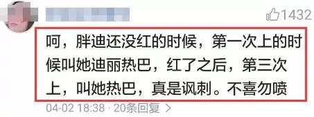 据悉当时迪丽热巴还没有红,是跟着杨幂第一次参加快本,被快本主持人喊名字的时候是迪丽热巴,而第三次再上快本时迪丽热巴已经很红了,被主持人喊名字的时候就叫热巴了,网友纷纷表示“太讽刺”