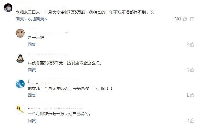 更有网友透露,李湘一家一年光是伙食费就要近百万