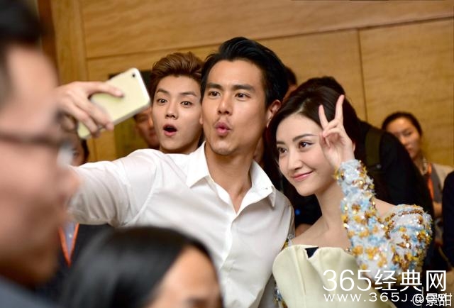 徐峥为了和两位美女合照,也是什么都不顾了,插在中间也很开心的。