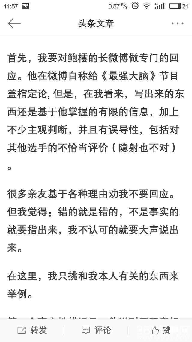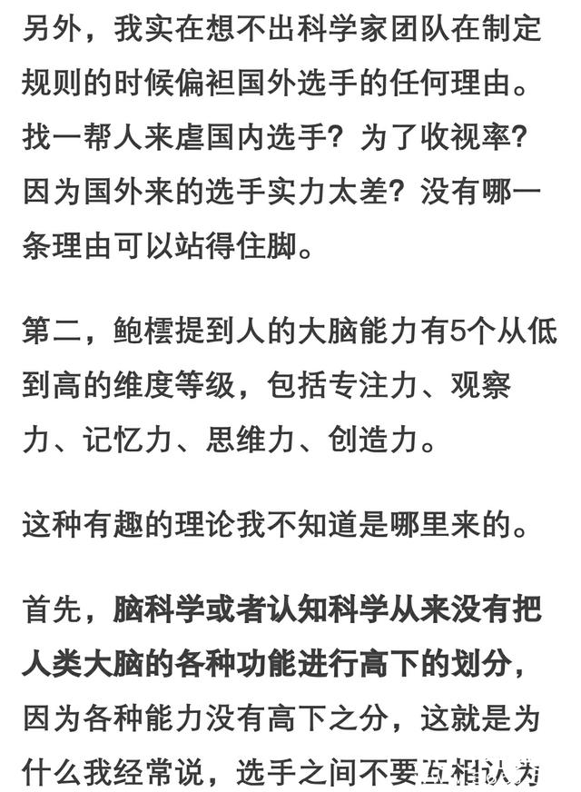 《最强大脑》科学判官叨叨魏今日就鲍橒的微博一一进行了回应,这真是昔日的战友为啥成了互怼的对象了呢?按理说现在节目已经结束录制,我想聪明人应该不会再搅这趟浑水了吧