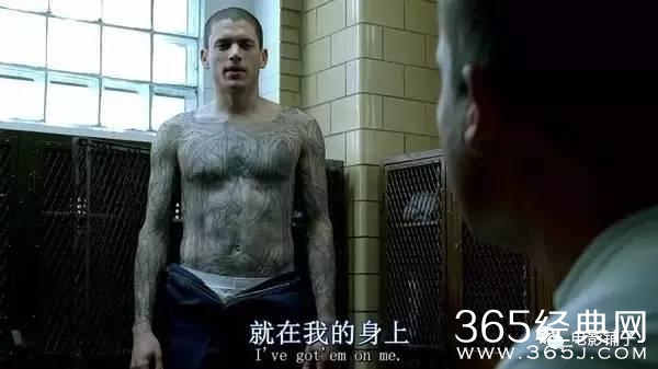 原来迈克尔身上的纹身不是天使与魔鬼,而是监狱建筑构造图。