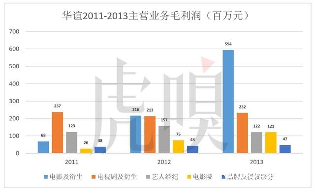 2013年,电影业务异军突起,实现毛利润5.94亿。