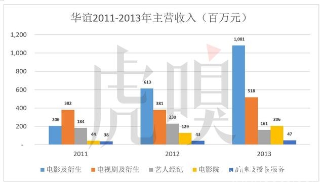 2014年之前,华谊兄弟的自身定位是“影视娱乐”公司,电影、电视剧、艺人经纪和影院都是一级主营业务,财报会披露每项业务的收入、成本。