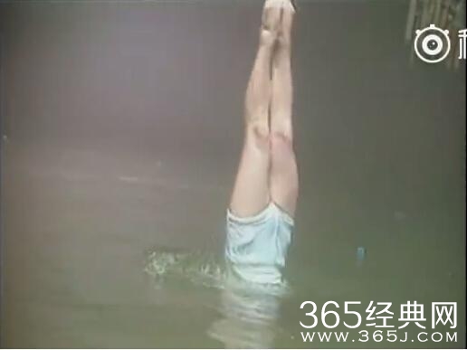 好一个水中倒立!就只见水面上时而一只腿时而两只腿若隐若现,就是这脑袋一直没露出