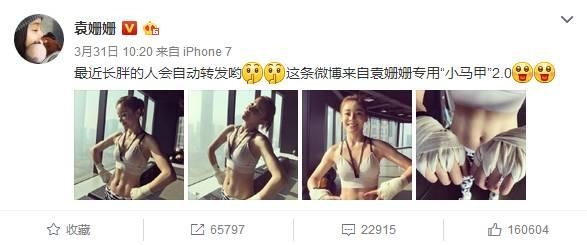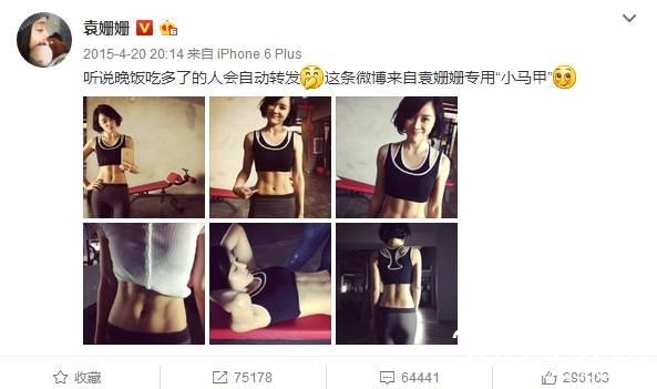 2015年她在微博上晒出一组自己的健身照