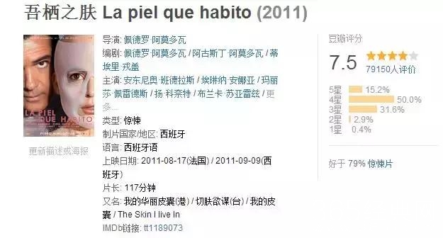 而毒药君今天要讲的是五部电影之一,重口味惊悚向的《吾栖之肤》(又名《我的华丽皮囊》、《切肤预谋》)。