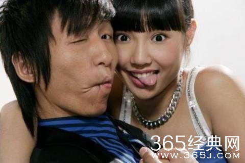 陈羽凡和白百合,虽然两人都在搞怪,不过因为结婚太早那个时候还不流行P图照出来显得很黑。