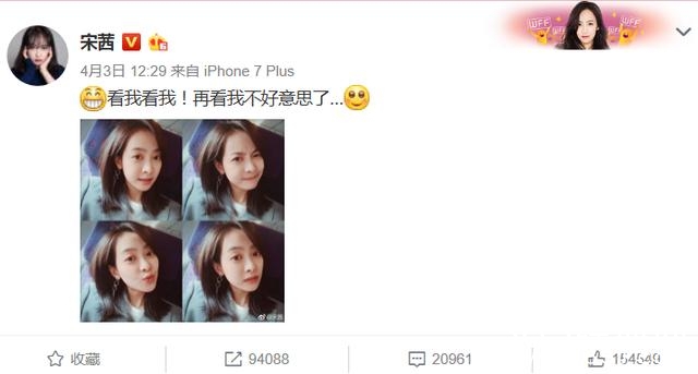 随后,宋茜在微博发了四连拍,疑似像担心她的粉丝表示自己很好。