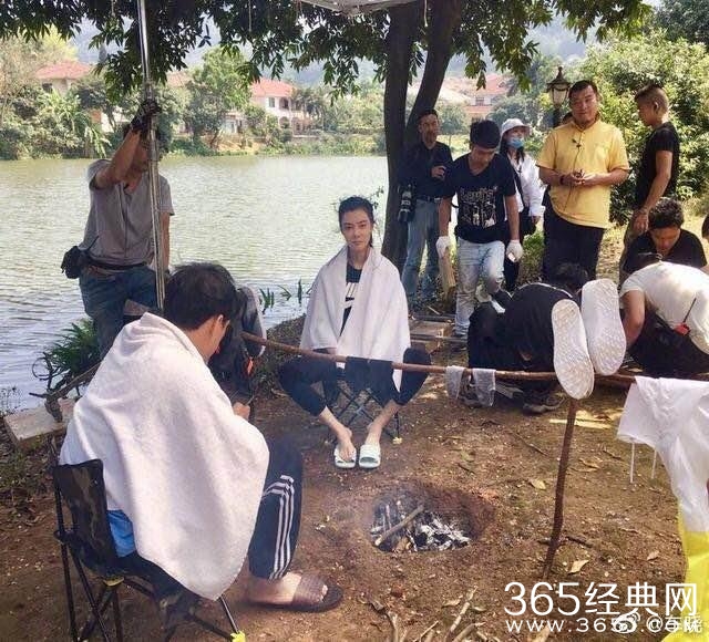 这是《宫》的片场。看看大幂幂这一脸生无可恋的样子。真是太热了,这军绿色的背心和粉色戏服的混搭....嗯...真...真好看....(尴尬脸.jpg)