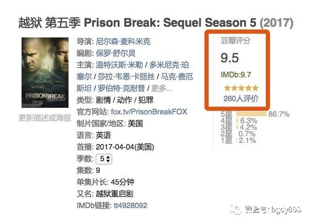 激动的小伙伴们都疯狂了,豆瓣上的《越狱》已经刷出了9.5的高分。