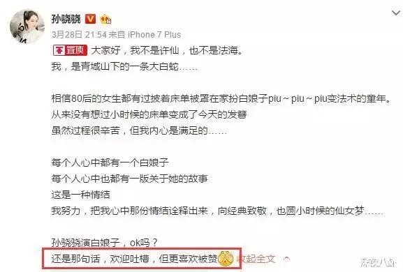 好在此举虽不讨喜,但也并不讨厌。孙骁骁本人都在微博说了欢迎吐槽,妹子情商还是很ok的,而且扮相确实也吼吼看!
