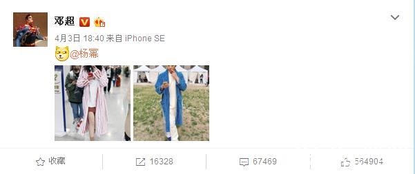 近期娱乐圈的大逗逼邓超同学又在微博玩嗨了,他放出了一张自己cos杨幂最新的机场造型,抛掉人跟条纹外套的颜色差别外,动作简直神一致。然后他还艾特了杨幂。