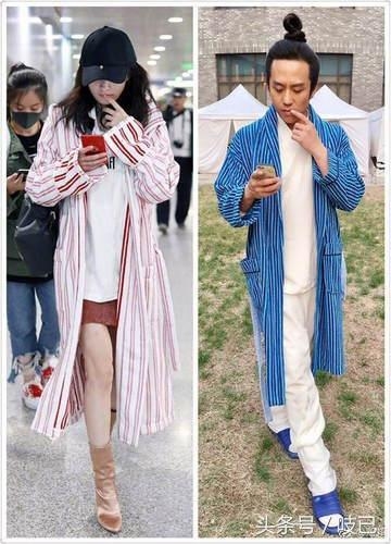 照片中,邓超依然扎着古装发髻,穿着长款条纹睡衣外套,内搭古装内衫,模仿杨幂手指抵着嘴唇,低头看手机的姿势。此次杨幂好像终于“服气”,幽默点评道:“水土都不服就服你,后面两位哥哥的眼神就是我的眼神,赞我让楼主看见。”网友纷纷被邓超的逗逼逗笑,评论:“超哥,说实话还是上次那件更时髦点。”“撞衫不可怕,你丑你尴尬。”