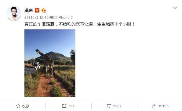 吴京发了一条配图为猴子的微博