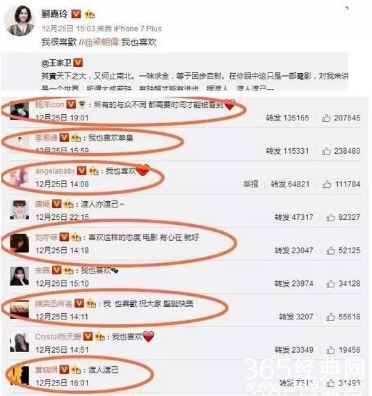 在“摆渡人”上映屡遭质疑的时候,王家卫发了这样一条“我喜欢”的微博!