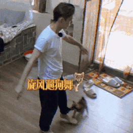 咬住何炅的裤腿不带松口的,一起享受玩耍的乐趣。