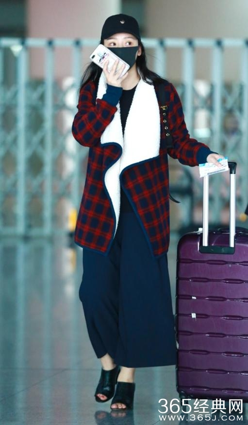 而柳岩出现在机场的画风就让人有点看不懂了——这是夏天还是冬天,上身穿大衣,而鞋子竟然搭配了一双凉鞋。