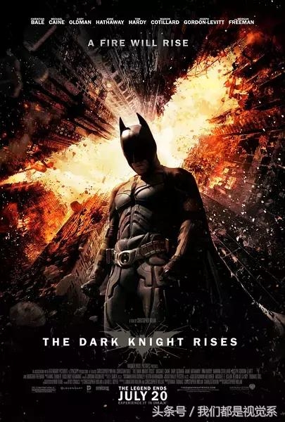 《蝙蝠侠:黑暗骑士崛起》(The Dark Knight Rises)改编自DC漫画公司的经典超级英雄漫画《蝙蝠侠》,由克里斯托弗·诺兰执导,克里斯蒂安·贝尔,安妮·海瑟薇等主演,是诺兰执导的蝙蝠侠系列三部曲的最终章。前两部分别是2005年的《蝙蝠侠:侠影之谜》和2008年的《蝙蝠侠:黑暗骑士》。