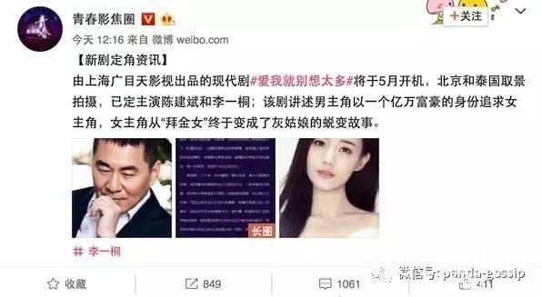 剧名叫《爱我就别想太多》,已经定了主演是陈建斌和李一桐,5月份就开机了,讲的是亿万富豪男主角追求女主角的爱情故事。