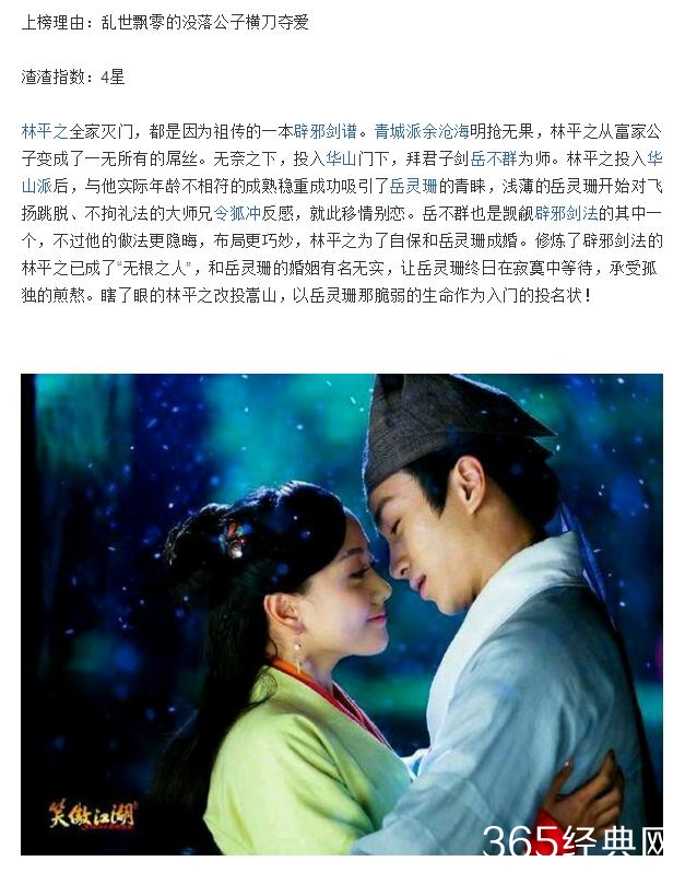 4.林平之,他是《笑傲江湖》中的配角,虽然他无情地杀害深爱自己的女子小师妹岳灵珊,但是其实他也是金庸笔下命运最惨烈,意志最坚刚的角色之一。