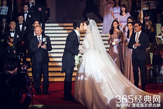 从这张两人亲吻的照片可以看出两人结婚的幸福甜蜜