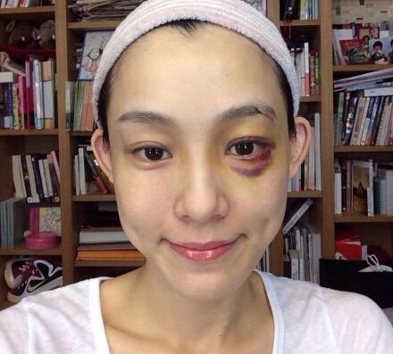 有次范冰冰拍戏,一根被压弯的木棍飞起弹出,直接打到范冰冰眉骨上,顿时红肿一片,范冰冰也摔倒在地,差点就伤到眼球。事后范冰冰只是简单的冰敷了一下就返回片场继续拍摄,眉骨青紫的两周里,只能靠化妆来掩饰一下。