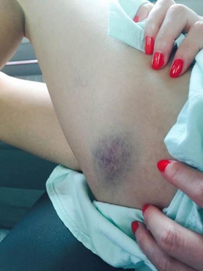 杨颖曾在朋友圈里晒出自己参加某节目受伤的照片,只见肩部,膝盖,后辈出现的红肿和划痕