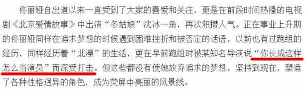 刚刚出道的时候,被某导演嘲讽长得丑——“你长这样怎么当演员”。因为这句话一直都怀疑自己不适合做演员~~~