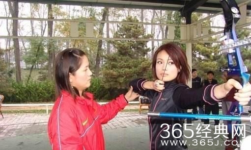容祖儿对待射箭这项体育项目很是认真,不仅装备齐全,还有专业教练指导,这拿弓箭的姿势是不是很赞。