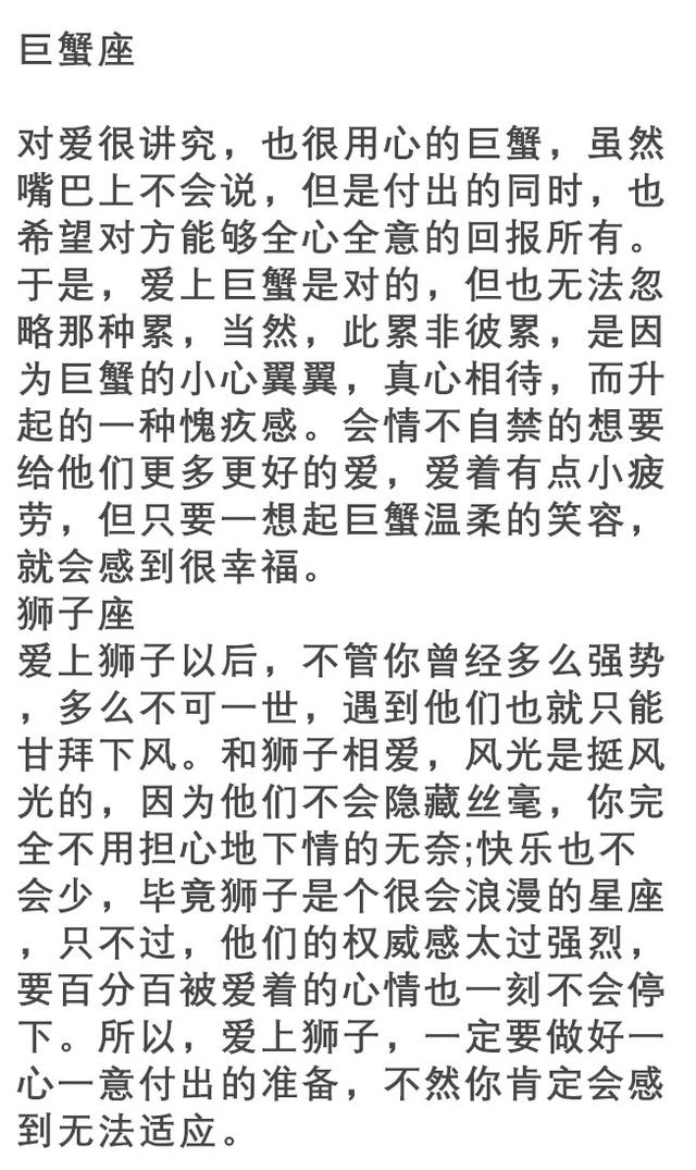 如果你是一个潇洒自在,为人处事不拖泥带水的人,那么爱上水瓶,那会是最绚丽的碰撞,激发的也是耀眼的火花,毫无累可言,满满的都是惊喜;但如果你是个喜欢想太多,占有欲过强的人,那么爱上水瓶就会很累很累,因为他们的私人空间不容硬闯,特别是友情这一块。重友轻色常常发生,想太多,占有欲太强,都会感到找不到爱的痕迹,进而忧心忡忡,赶不上水瓶的步伐。