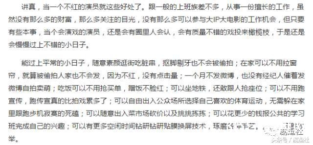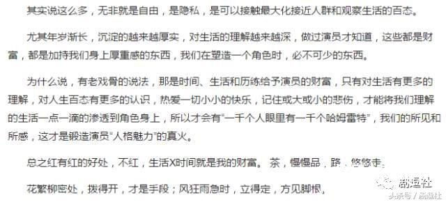 她曾在知乎回答过“作为一名不红的演员是种什么体验?”的问题,言语之间十分从容。