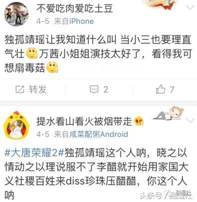 然鹅这赤裸裸的小三上位还是没能扭转吃瓜群众对独孤靖瑶这个人物的差评。
