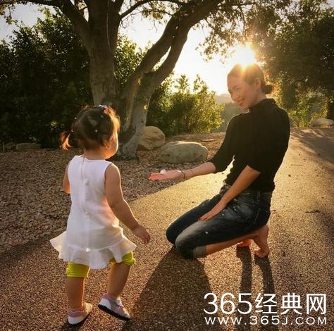 章子怡在微博中晒出和女儿的照片,她一身简单的打扮,称:在一起,即使捡个石子玩儿我们都是那么快乐!