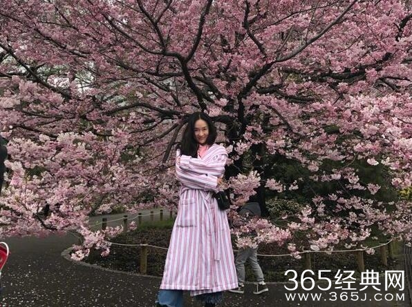霍思燕在春暖花开的日子里,晒照称自己是一只粉红色的孔雀。穿着一身粉粉的竖条纹风衣,和儿子在花树下摆pose嘟嘴凹造型。
