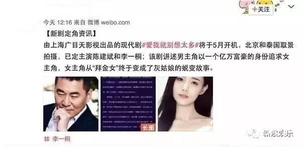剧名叫《爱我就别想太多》,说是已经定了主演是陈建斌和李一桐。