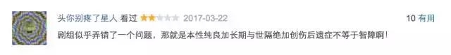 豆瓣网友@头你别疼了星人:剧组似乎弄错了一个问题,那就是本性纯良加长期与世隔绝加创伤后遗症不等于智障啊!