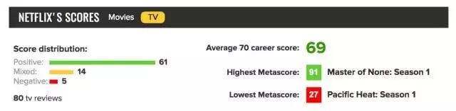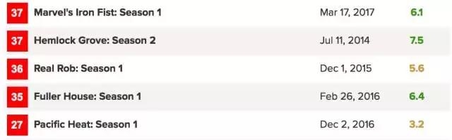 号称影评“严罗王”的Metacritic上,显示有评分的网飞剧中,不及格的有14部,烂成粑粑的……也有5部。