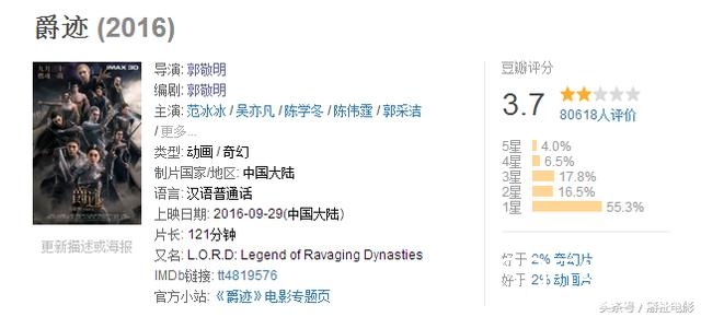 《爵迹》国内首部真人CG奇幻片,范冰冰、吴亦凡、陈伟霆等一众超强卡司助阵,不说拿下9.0的评分,这起码也要上8.0吧