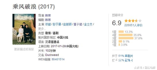 由赵丽颖、邓超联袂主演的《乘风破浪》,在豆瓣取得了6.9的评分。赵丽颖在这部电影的表现算是惊人的。