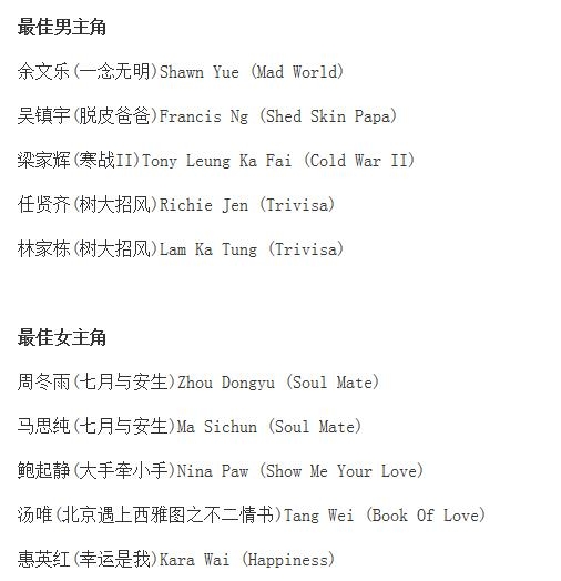 虽然每个奖项都竞争激烈而且很有技术含量,但不得不说,最佳男女主角已经超越最佳影片、最佳导演、最佳编剧等技术性奖项成为最受关注的奖项,这是因为明星光环太强大了所以备受瞩目。在即将揭晓之前,不妨来比较和预测下金像奖的帝后候选人胜算如何。