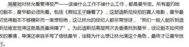 林允的每一个工作,周星驰都会亲自过目,哪些戏可以接不可以接,他都仔细做考量。 比如说迪士尼投拍的电影找上林允,都要高层找到星爷这里反复交谈才能通过。