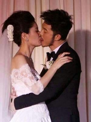 看两人结婚现场照,哈哈,一看到真的是忍不住笑出声来,感觉沙溢吻的很投入,一脸幸福。