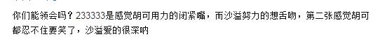 网友也调侃道:感觉胡可用力的闭紧嘴,而沙溢努力的想舌吻,第二张感觉胡可都忍不住要笑了,沙溢爱的很深呐